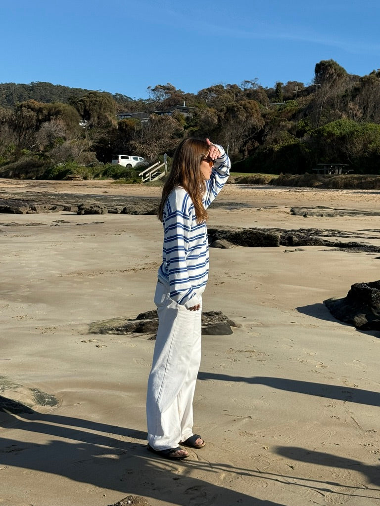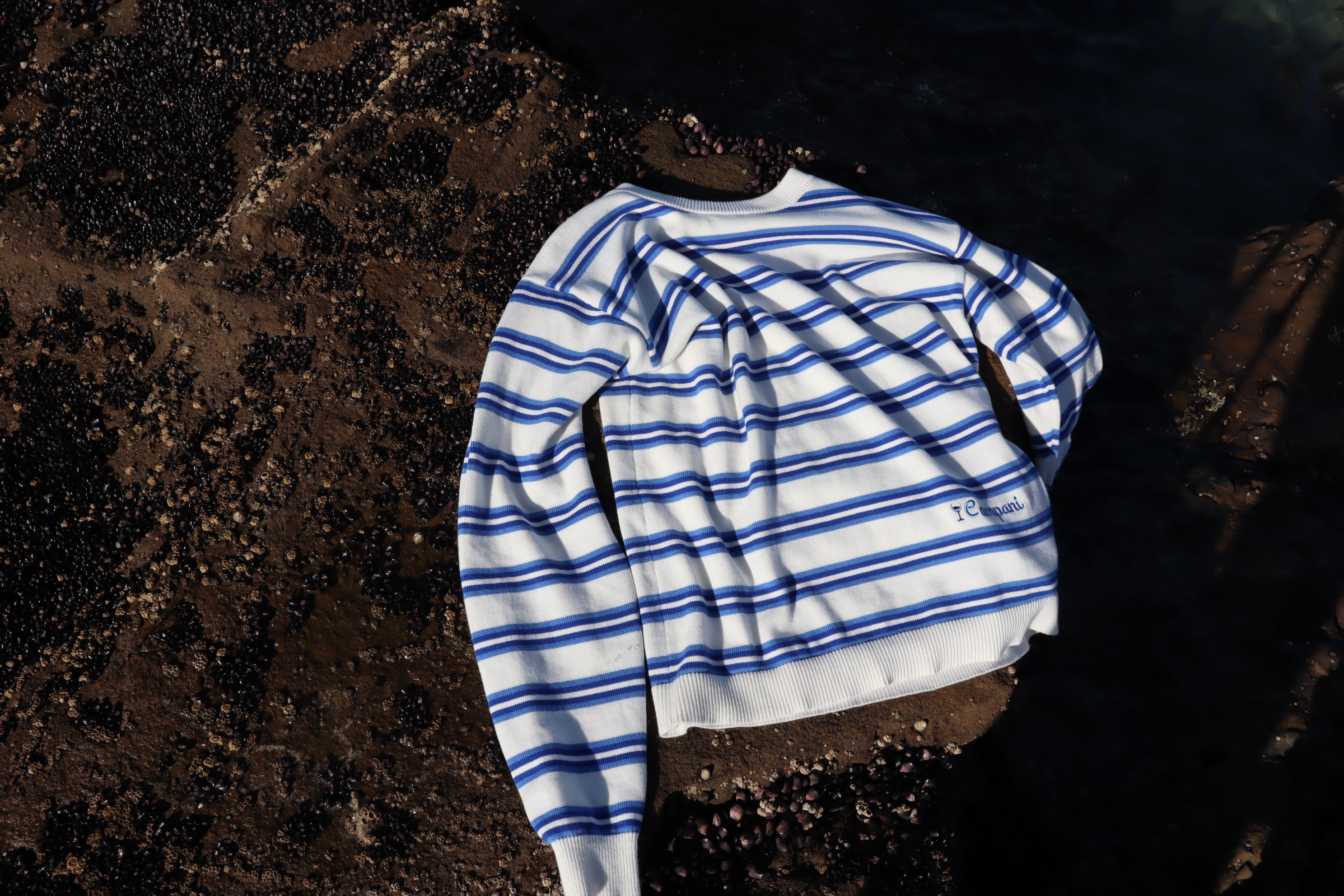 Campani second product release occurred on the 30th of October. The Comfort Coastal Knit includes a stripped pattern of bright white, baby blue and a navy blue pattern. The lightweight knit is perfect for any season with its light cotton fabric making it perfect for summer or winter. Our logo 'Campani' is embroided on the front left of the knit in baby blue alongside our wine glass emblem in navy blue.